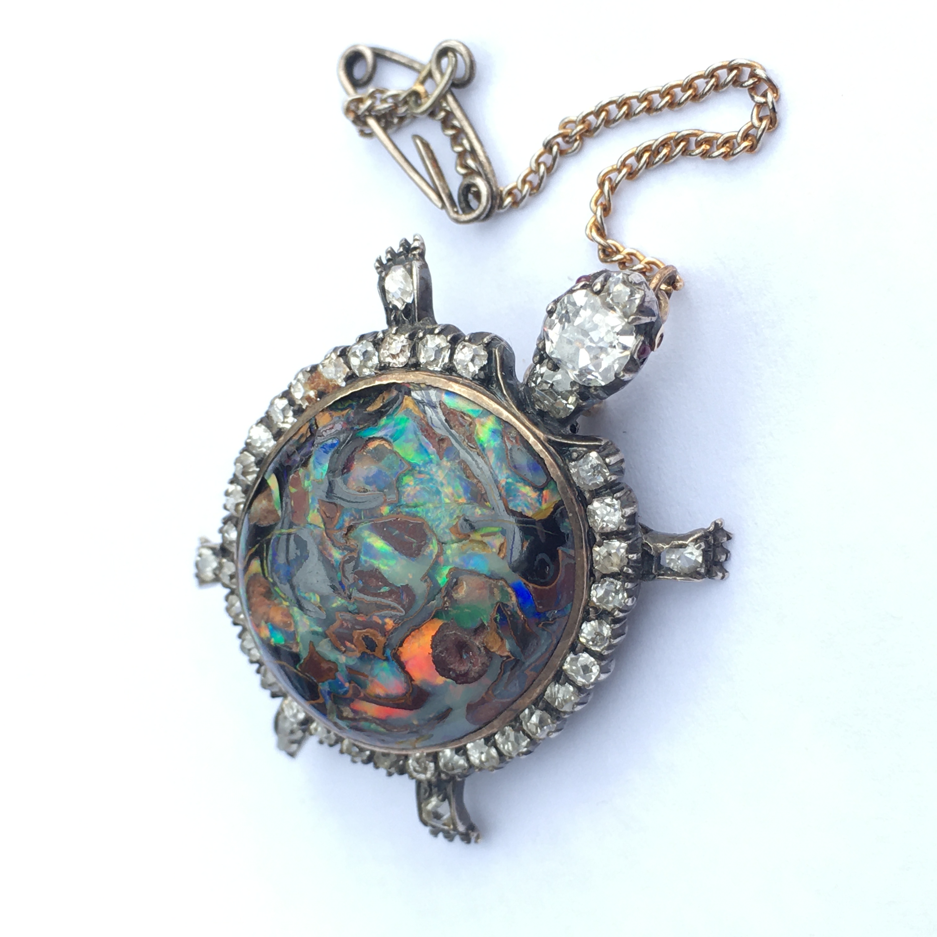 Wonderful Victorian Gold, Diamond & Opal Tortoise Brooch/Pendant