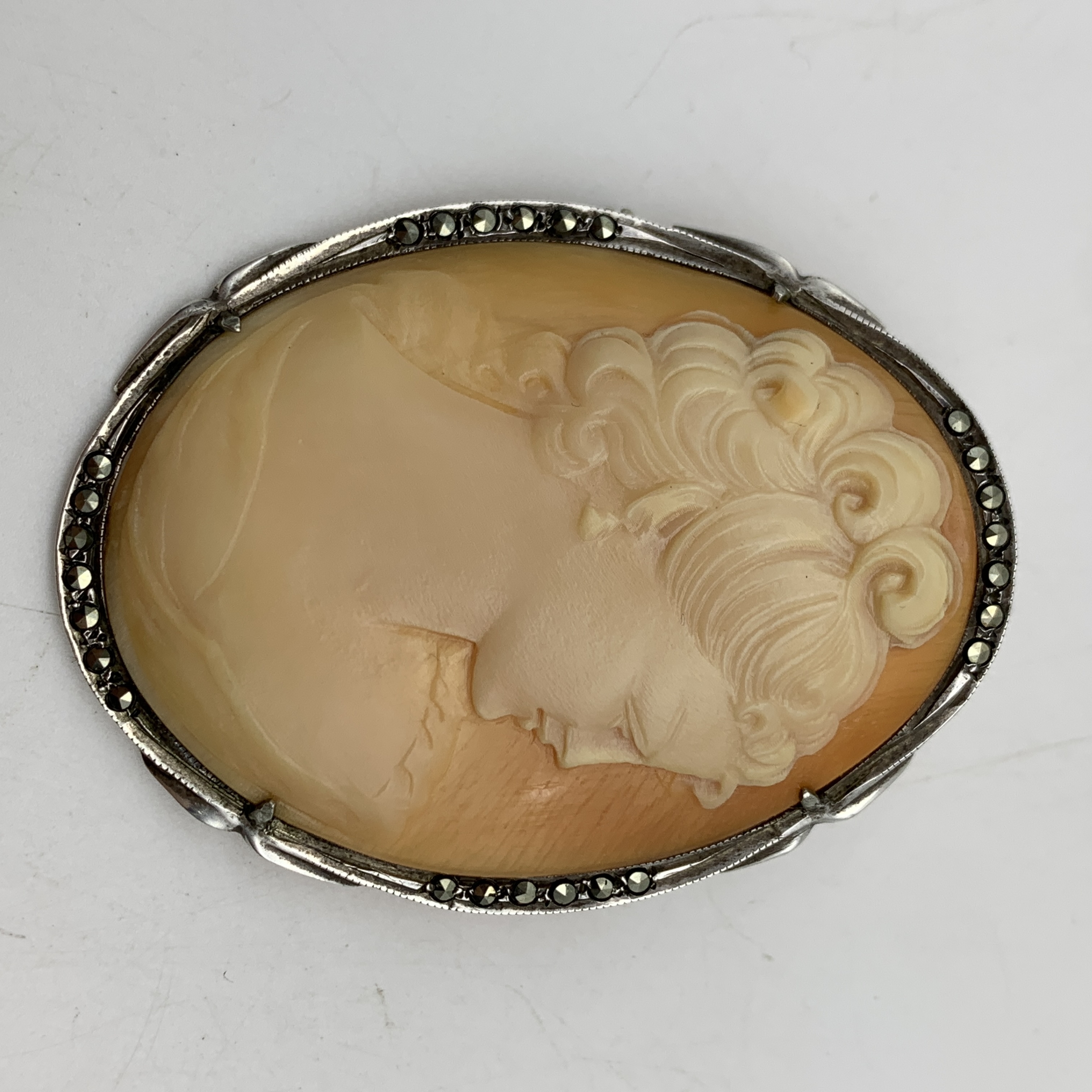 Vintage Silver & Marcasite Cameo Brooch or Pendant